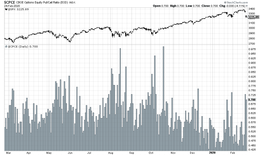 Similarly, the equity-only put/call ratio was only 0.70.