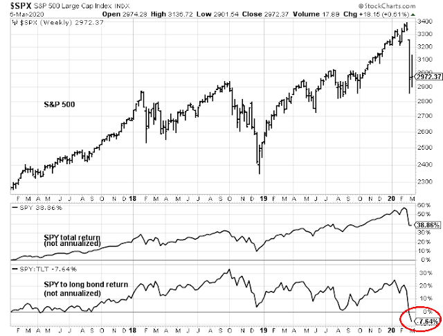 The Fed’s emergency rate cut is disconcerting. Inter-meeting rate cuts are emergencies, and emergencies have historically been unfriendly to equity returns. Even before the Fed’s rate cut, I suggested last week that something was seriously afoot in the economy (see A Lehman Crisis of a different sort). While the stock market may stage a short-term relief rally from these levels, historically it has not performed well over a 6-18 month time horizon.