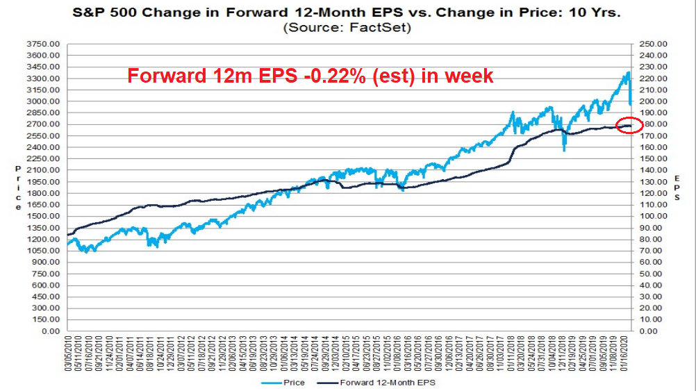 There are also worrisome signs from fundamental and macro perspectives as well. FactSet reported that Street analysts are starting to downgrade their earnings estimates, indicating bearish fundamental momentum.