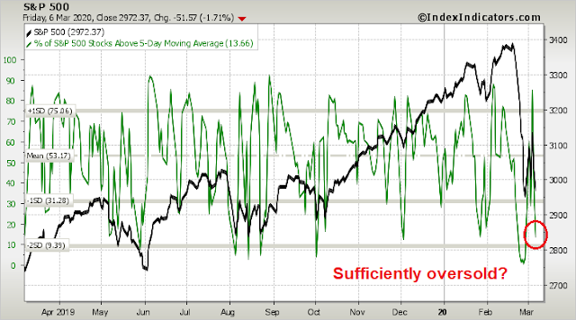 While I am cautiously bullish at a tactical level, it could also be argued that the market has not sufficiently tested the February lows. Should stock prices retreat to test those lows early next week, the bulls can take some comfort that any test would likely be accompanied by positive 5 and 14 day RSI divergences. On the other hand, the bears are likely to defend the highs set in the rally last week, which could make trading the market an interesting challenge.
