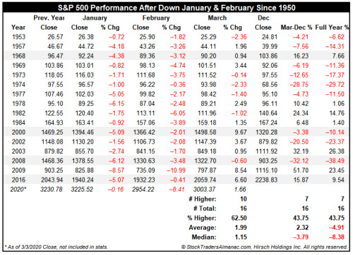 A good reminder from Cam and Jeff Hirsch that showed the combination of a down January and down February has led to subpar equity returns for the remainder of the year resulting median is -3.8% (Mar-Dec) and -8% (full year). If you pay attention to the year 1969, a year that most of Wall St. has forgot, which started with an all time high in the S&P in the last days of 1968 and then the Hong Kong influenza which started earlier in July of 1968 and the same virus returned the following years: a year later, in late 1969 and early 1970, and in 1972, killing nearly 1 million worldwide in total. The market lost nearly 38% by June of 1970 and the US also entered a recession. For 1969 the market returned -6.2% (Mar-Dec) and -11.4% (full year). The good news was that the market reached a new all time high soon after on Jan 1973 after the re-election of a Republican president but lost it all again by Oct 1974 (Nixon resigned in Aug 1974). Maybe history will repeat itself by 2022? But who are we kidding?