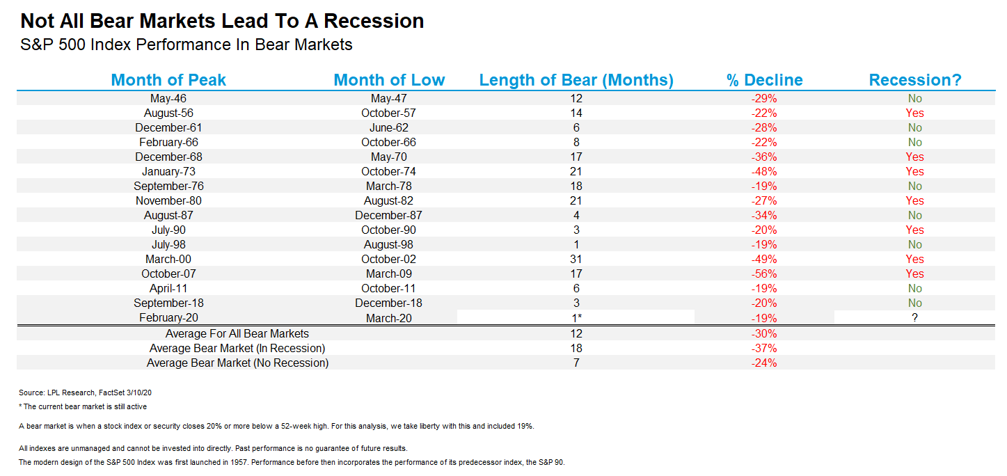 Ryan Detrick of LPL Financial pointed out that recessionary bear markets last longer and see deeper pullbacks than non-recessionary bears. Investors need to respect that lesson from market history.