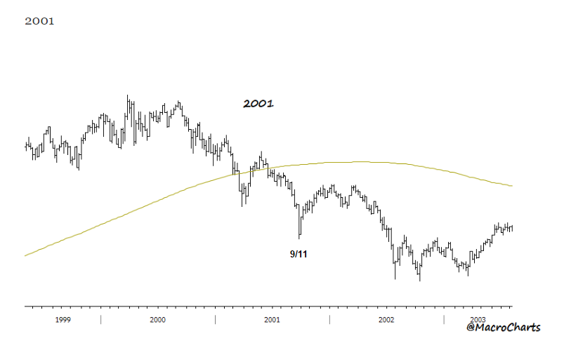 The shocking events of 9/11 was a special case. The economy was already in recession. The market bounced after 9/11, but it weakened after the bounce and made a new low in 2002. The 2002 bottom was a classic bounce-and-retest bottom.