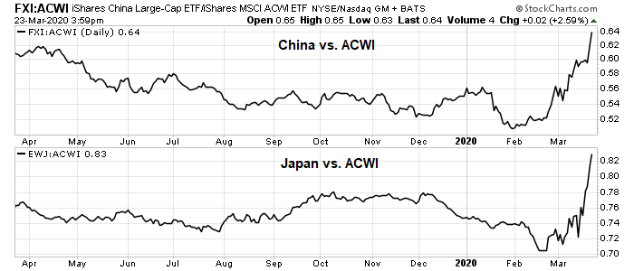 I would be remiss if I did not mention the pure price momentum plays internationally. China and Japan have been surging as their COVID-19 epidemics have come under control. From a technical perspective, however, they appear to be highly extended and ripe for setbacks. Momentum traders can consider buying them on pullbacks.