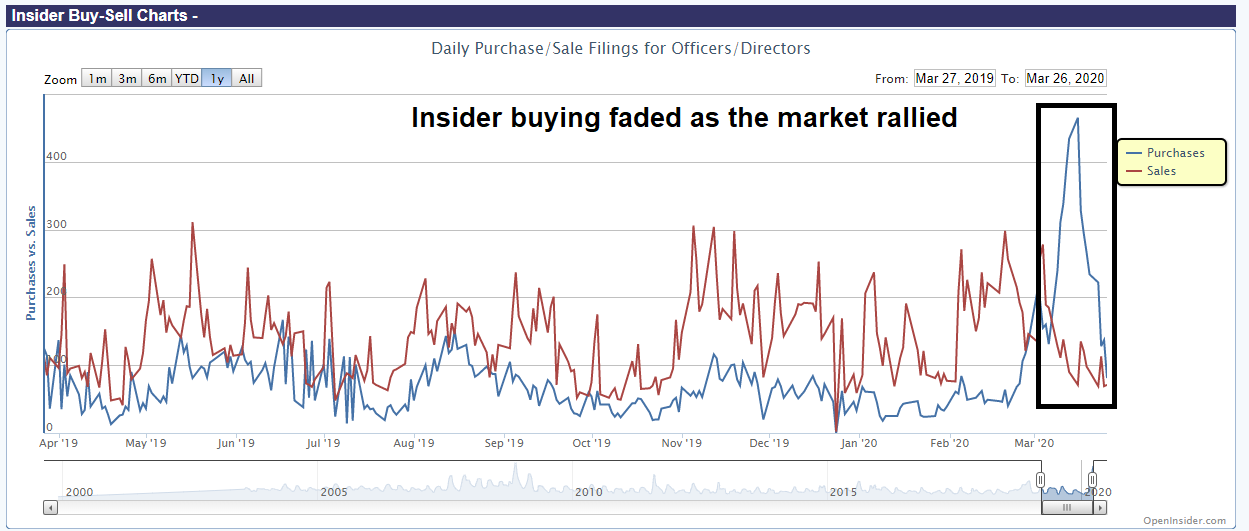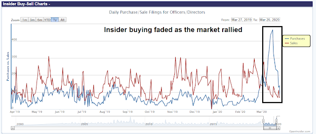Corporate insiders have shown themselves to be highly valuation sensitive during this downdraft. A concentrated cluster of insider buying appeared just as the market fell, but buying evaporated as the market recovered.