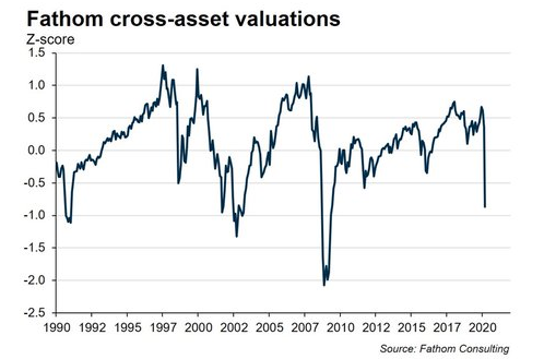 Does that mean that stocks are no longer cheap? Well, sort of. Fathom Consulting recently introduced a valuation model based on cross-asset valuations. It shows that equities are cheap, but they could become even cheaper.