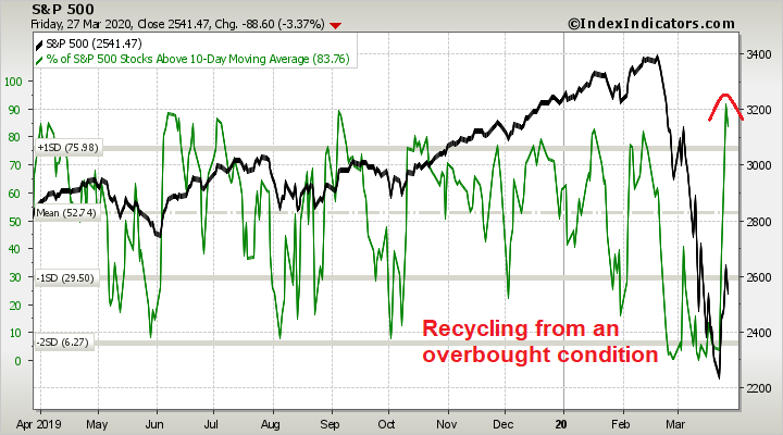 Short-term breadth is recycling off an overbought extreme, which argues for weakness early in the week.