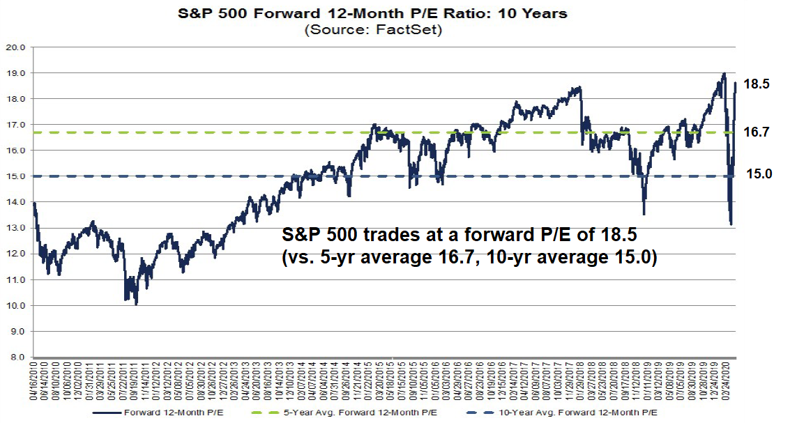 - How much more upside do you expect when the market trades at a forward P/E ratio that is higher than its 5 and 10 year averages? That’s assuming that earnings are in recovering in 2021. Should investors start to discount what amounts to a highly uncertain 2022 earnings two years in advance?