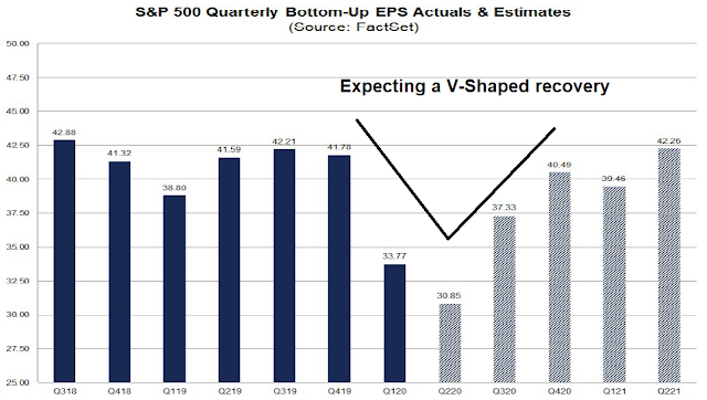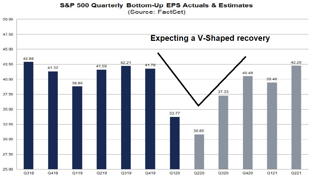 The Street is already penciling in a V-shaped rebound in consensus earnings expectations. Earnings are expected to bottom out in Q2, and return to normal by Q4.