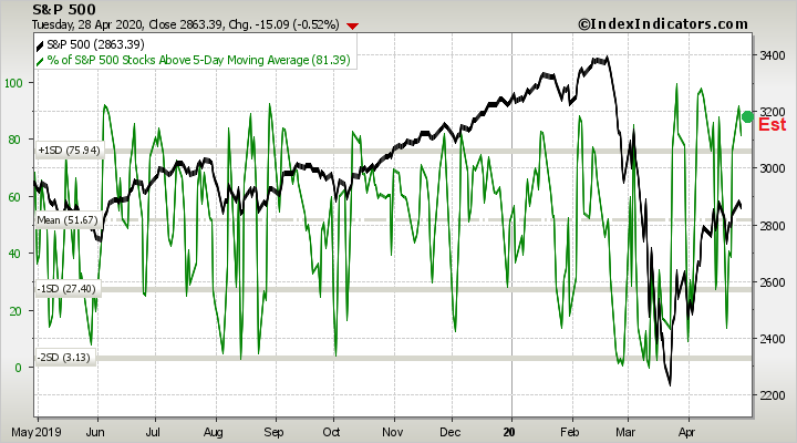 Here is what I am watching over the next few days. Short-term breadth is becoming overbought again, and the market could be due for a breather for the rest of the week.