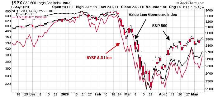 Even as the NASDAQ Index turns positive on YTD basis, broader market indicators such as the Value Line Geometric Index and the NYSE Advance-Decline Line are lagging the broader market advance. This retail supported rally looks like it is on its last legs.