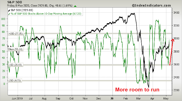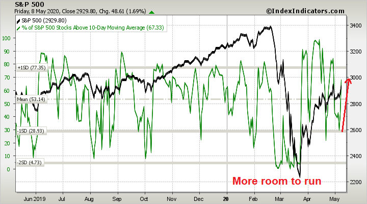 On a longer time frame, however, they have more room to advance based on the percentage of stocks above their 10 dma.