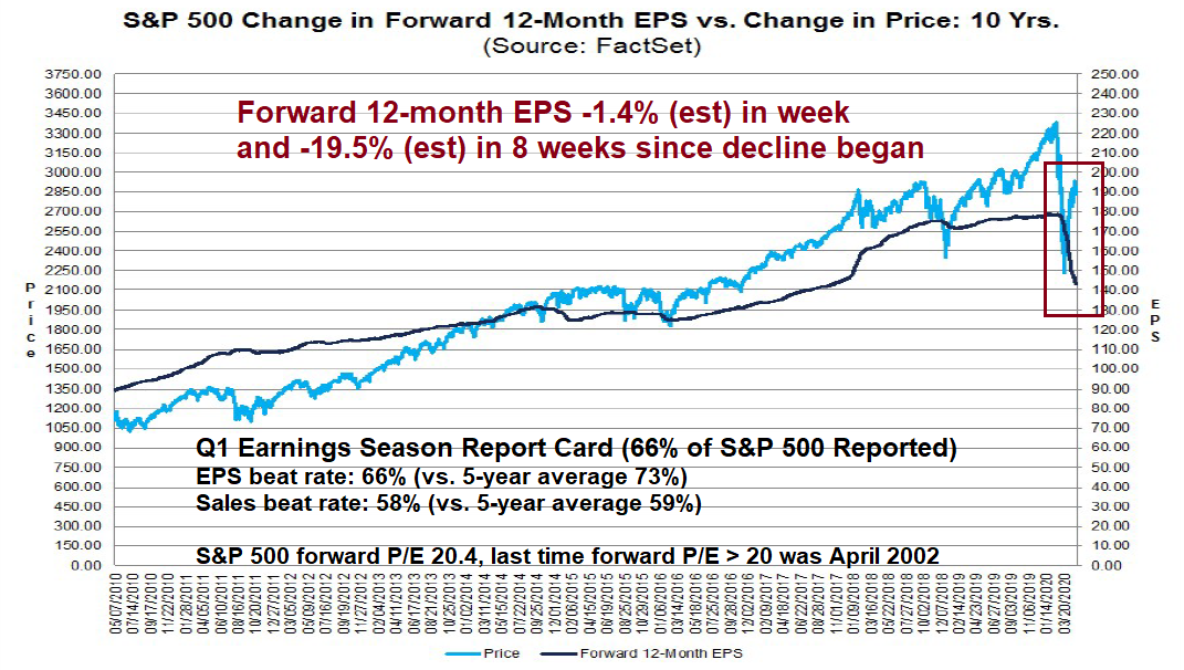 Let’s begin with the big picture. FactSet reported that the bottom-up consensus forward 12-month estimate fell -1.4% last week (vs. -1.9% the previous week), and -19.5% since downgrades began eight weeks ago. The EPS and sales beat rates were both below their 5-year historical averages.