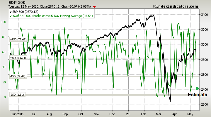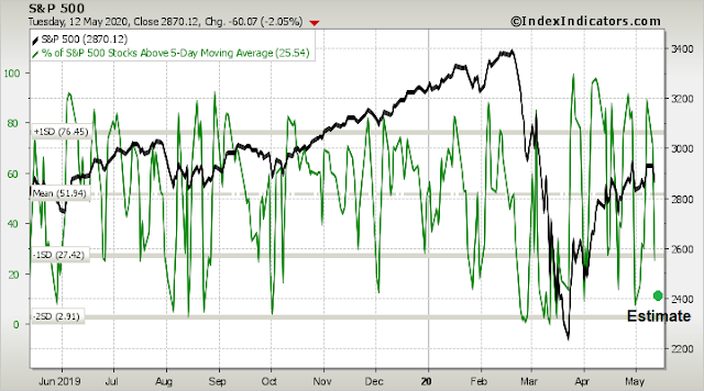 Macro Charts observed that the market has become extremely overbought. Overbought conditions without a breadth thrust (Zweig, Whaley, etc.) tend to be bearish for stock prices.