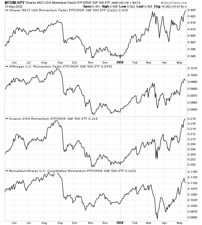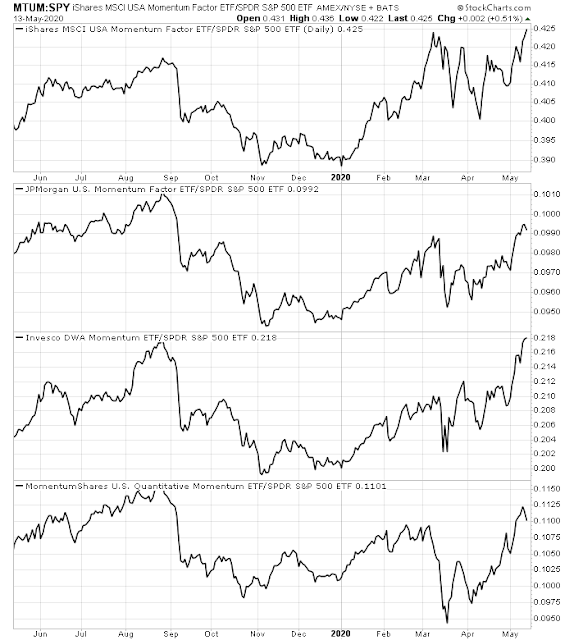 First, the advance from the March lows was led by FANG+ and momentum stocks. Different measures of the price momentum factor shows that momentum is still alive.