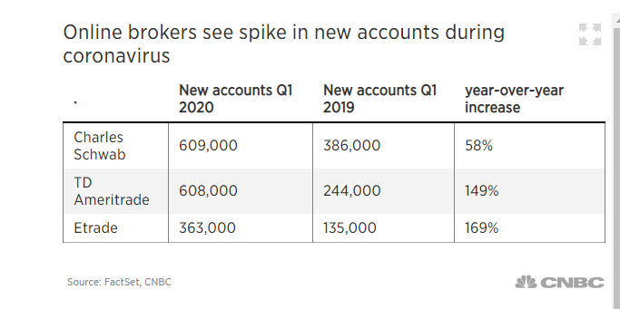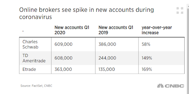 I had also discussed the apparent anomalous AAII sentiment survey crowded short reading on the weekend (see Setting up to climb a wall of worry?). I suggested that new low-information traders and investors had rushed into the market. The market’s advance could be partly explained by their stampede into FANG+ and small speculative names. Indeed, CNBC reported that online brokerage firms had seen a surge in new investor accounts in Q1.