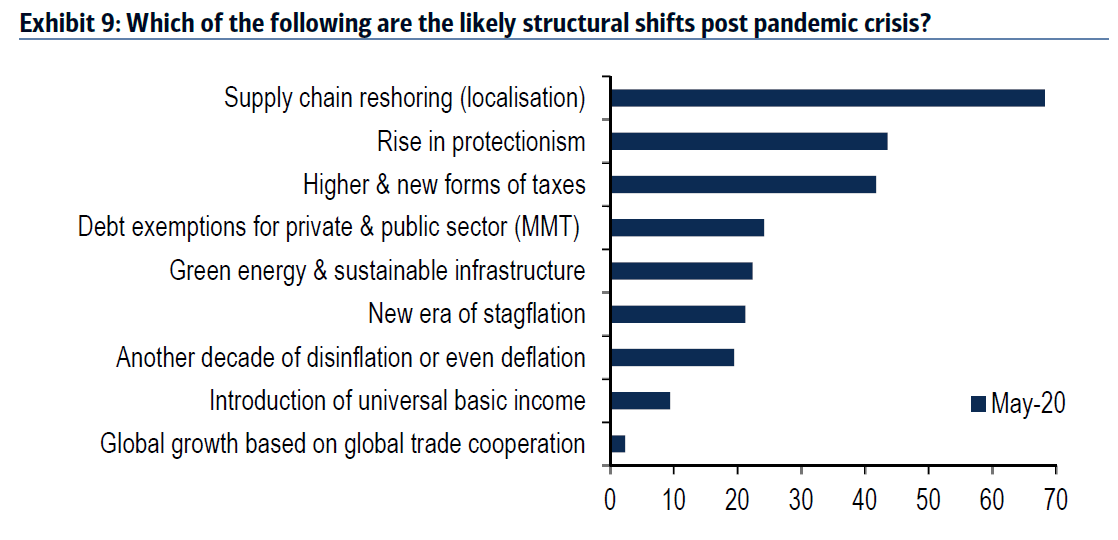 Current consensus opinion seems to be tilted towards greater supply security. It won’t matter who wins the election in November. The US view on China from both sides of the political aisle is becoming increasingly antagonistic. In addition, the COVID-19 crisis has laid bare the vulnerabilities of global supply lines, especially in pharmaceuticals and medical equipment. At a minimum, expect greater pressure to onshore more production in all industries in 2021.