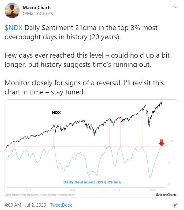 Macro Charts voiced a similar warning on the NASDAQ. Stay cautious, but wait for the downside break before turning too bearish.