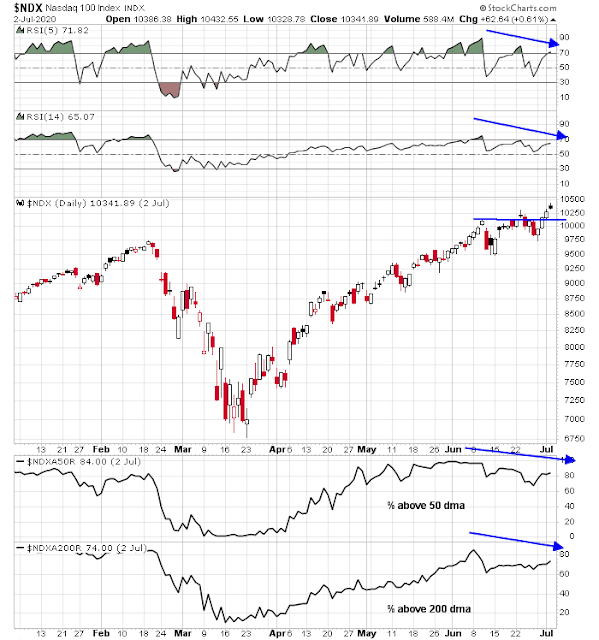 Similarly, the relative performance of NDX to SPX is also exhibiting a negative RSI divergence.