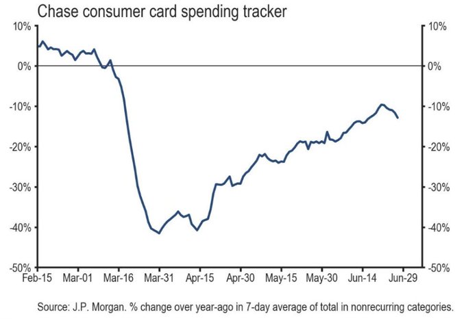 As well, Chase reported that consumer card spending is also weakening.
