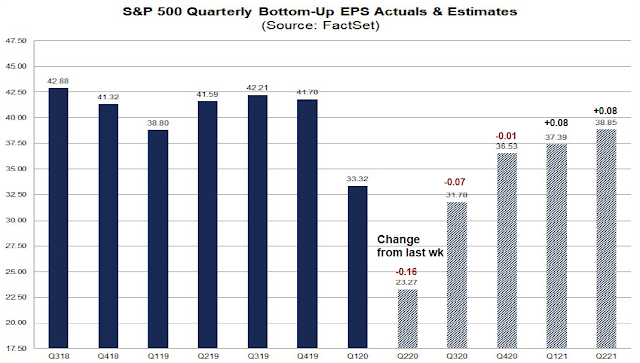 As we enter the Q2 earnings season, companies will undoubtedly discuss their near-term outlook. The latest update from FactSet shows that the Street is lower near-term 2020 estimates, while raising longer term 2021 estimates. Much will depend on the companies’ body language this earnings season, though an extraordinary number of withdrawn guidance owing to high levels of uncertainty.
