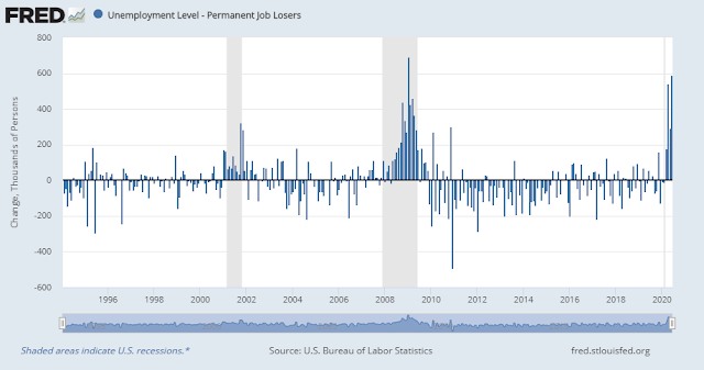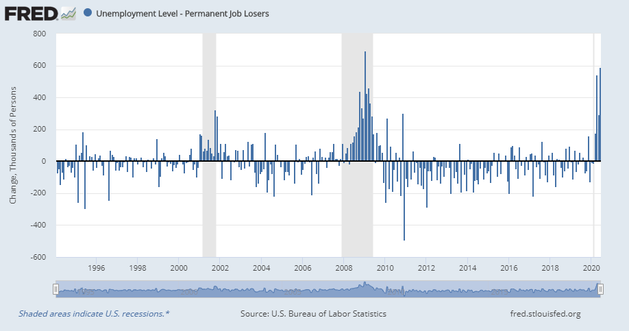 So far, the jobs recovery can be seen in the reversal of temporary furloughs. The unfortunate news is the number of permanent jobs lost.