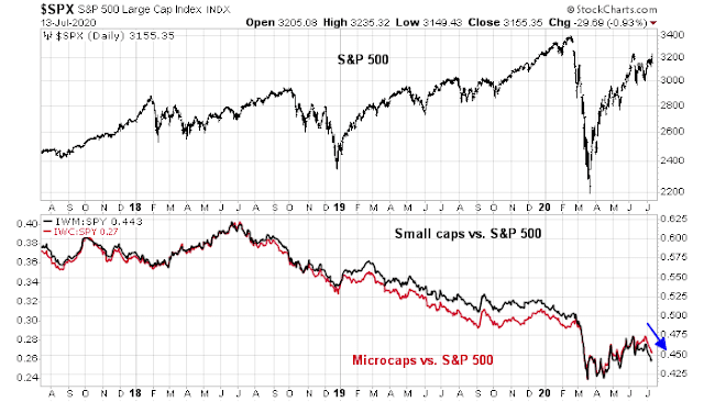 Stress levels are already evident in the especially vulnerable small cap stocks. 42% of the Russell 2000 are not profitable, which is a level consistent with recessionary conditions.