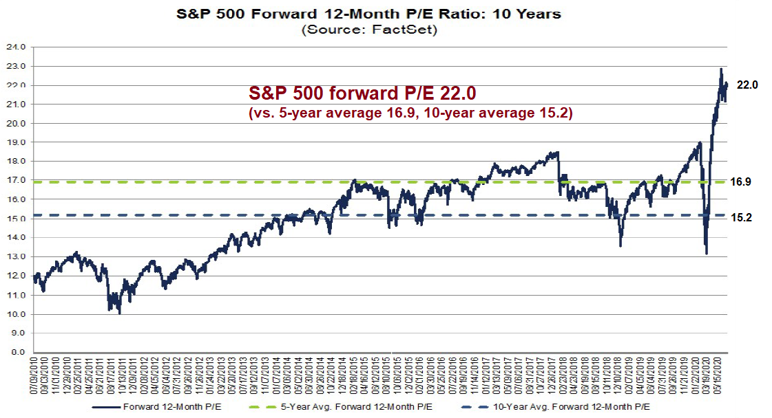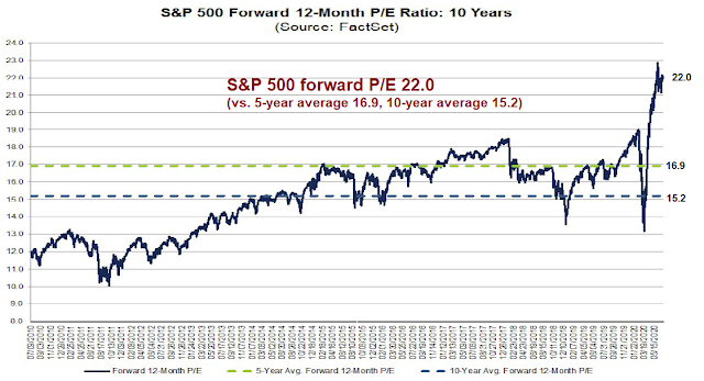 As Elon Musk passes Warren Buffett in net worth, it is time to sound one more warning about the market’s valuation. FactSet reported that the stock market is trading at a forward 12-month P/E of 22.0, which is well above its 5 and 10 year averages.
