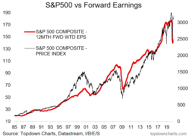 One explanation is US equity market leadership has been concentrated in a handful of large and profitable technology names. The stock market isn’t the economy, and the economy isn’t the stock market. Nevertheless. forward earnings are still highly correlated with business sales, which have tanked.