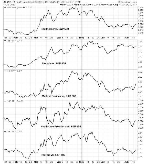 Mid-week market update: The market has taken on a risk-on tone as news of a promising Moderna vaccine trial hit the tape. While the relative performance of healthcare stocks haven’t done much for several weeks, they did catch a recent bid.