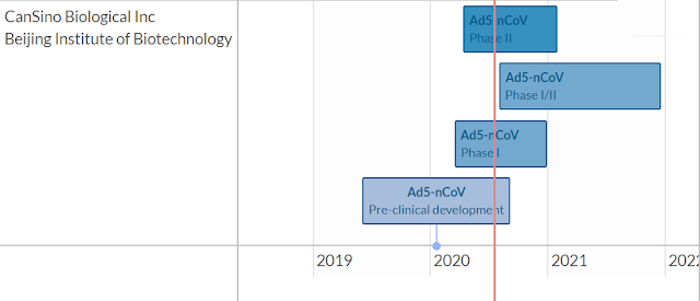 Reuters separately reported that China’s CanSino has a promising candidate. The company is contacting Russia, Brazil, Chile, and Saudi Arabia for phase III trials involving 40,000 patients. As well, the vaccine is being given to Chinese troops on an experimental basis. The timeline for the completion of phase III trials is also late 2021.