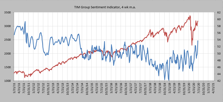 In addition, there are two sources of near-term uncertainty. We are entering Q2 earnings season, and most companies have withdrawn guidance. That’s like sailing in fog with possible icebergs in the water. In addition, it is unclear whether Congress with agree to a compromise bill for more fiscal stimulus. The latest round of CARES Act stimulus ends July 31, and states will have trouble re-programming their computers to effect new payments after July 25, which is only 10 days away. The Republicans, who control the Senate, and the White House have not even agreed on the details of a package. The lack of a united front has prevented them from presenting a proposal to the Democrats, who control the House.