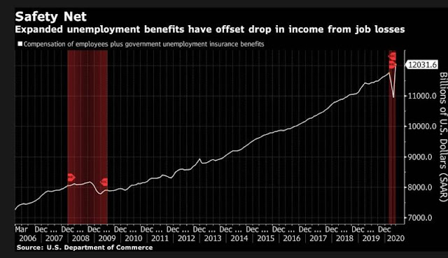 So far, the fiscal support provided by the CARES Act is creating a limited safety net for consumer spending. Joe Wiesenthal at Bloomberg observed that despite record job losses, total compensation for unemployed workers actually rose because of the CARES Act, whose provisions are set to expire at the end of July. For some perspective on the scale of fiscal support, George Pearkes at Bespoke estimated that a full expiry of the $600 per week unemployment insurance payment would cost the household sector 4.8% of Q1 nominal GDP at an annualized rate.