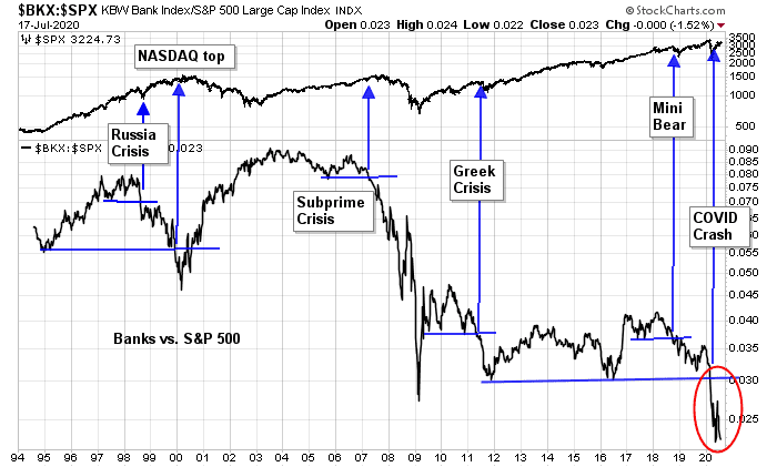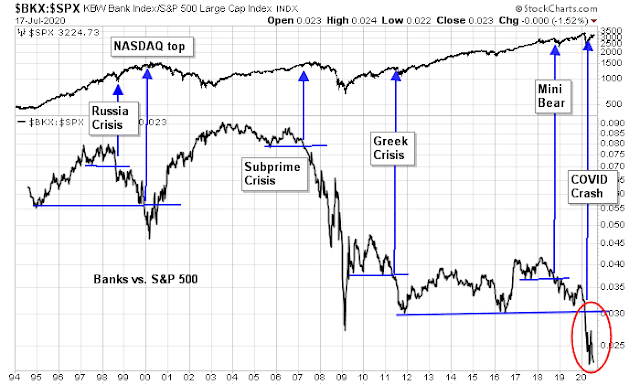 Earnings season has kicked off with reports from the major banks. The market reaction has been mixed so far. From a big picture perspective, history shows that whenever the relative performance of banking stocks have breached a major support level, such events have usually signaled periods of financial stress and bear markets.