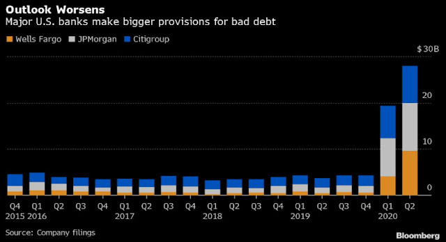 That may be about to change. Just when you thought the banks had “kitchen sinked” by writing off all of the bad loans in Q1, Bloomberg reported that JPM, C, and WFC have set aside about $28 billion in loan loss provisions in Q2.