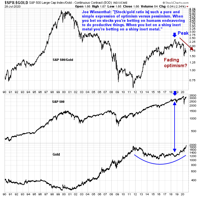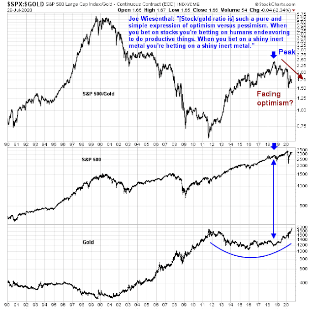 I wrote back in May that the falling stock/gold ratio is a sign of long-term headwinds for equity prices (see What gold tells us about confidence) and I stand by those remarks.