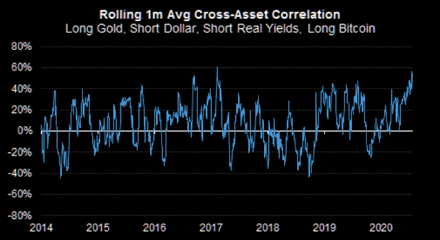 The explosion in gold and silver prices, and the weakness in the USD, are all becoming one big macro trade. Cross-asset correlation is rising, indicating herding behavior. We have a crowded long in gold and silver, and a crowded short in the USD. With sentiment so stretched, this is setting up for a possible explosive reversal.