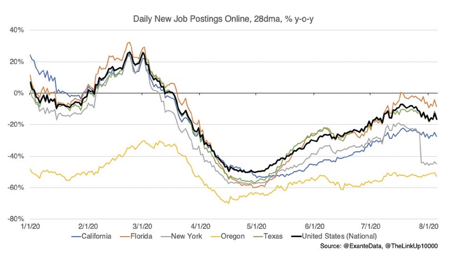 The impasse in Washington over CARES Act 2.0 is not helping matters. Ironically, the constructive nature of the July Jobs report provided reasoning for Republican budget hawks in the Senate to resist pressures for additional stimulus. While there has been some discussion, the Democrats and Republicans are far apart on a number of major issues.