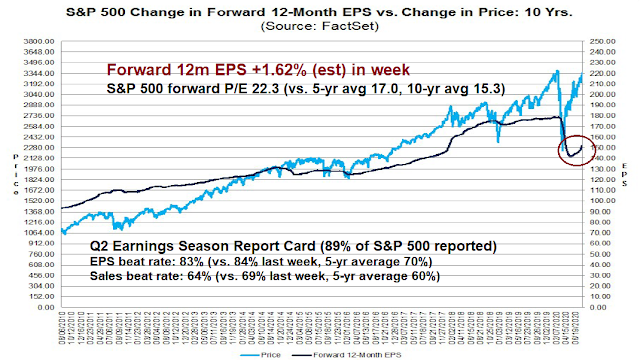 In conclusion, Q2 earnings season has been upbeat, and Street analysts are busy raising their earnings estimates. However, the economy is likely to undergo a phase of slower growth. The CARE Act 2.0 impasse is exacerbating the effects of the slowdown, and could bring the economy to a dead stop. Wall Street has not recognized those risks, and estimate revisions are poised to lurch downwards.