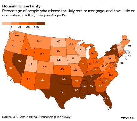 Eviction and homelessness is becoming a looming problem. An estimated 27% of Americans missed July rent payments. Of those, 39% were not confident they would be able to make their August payments.