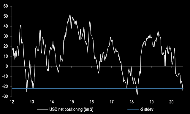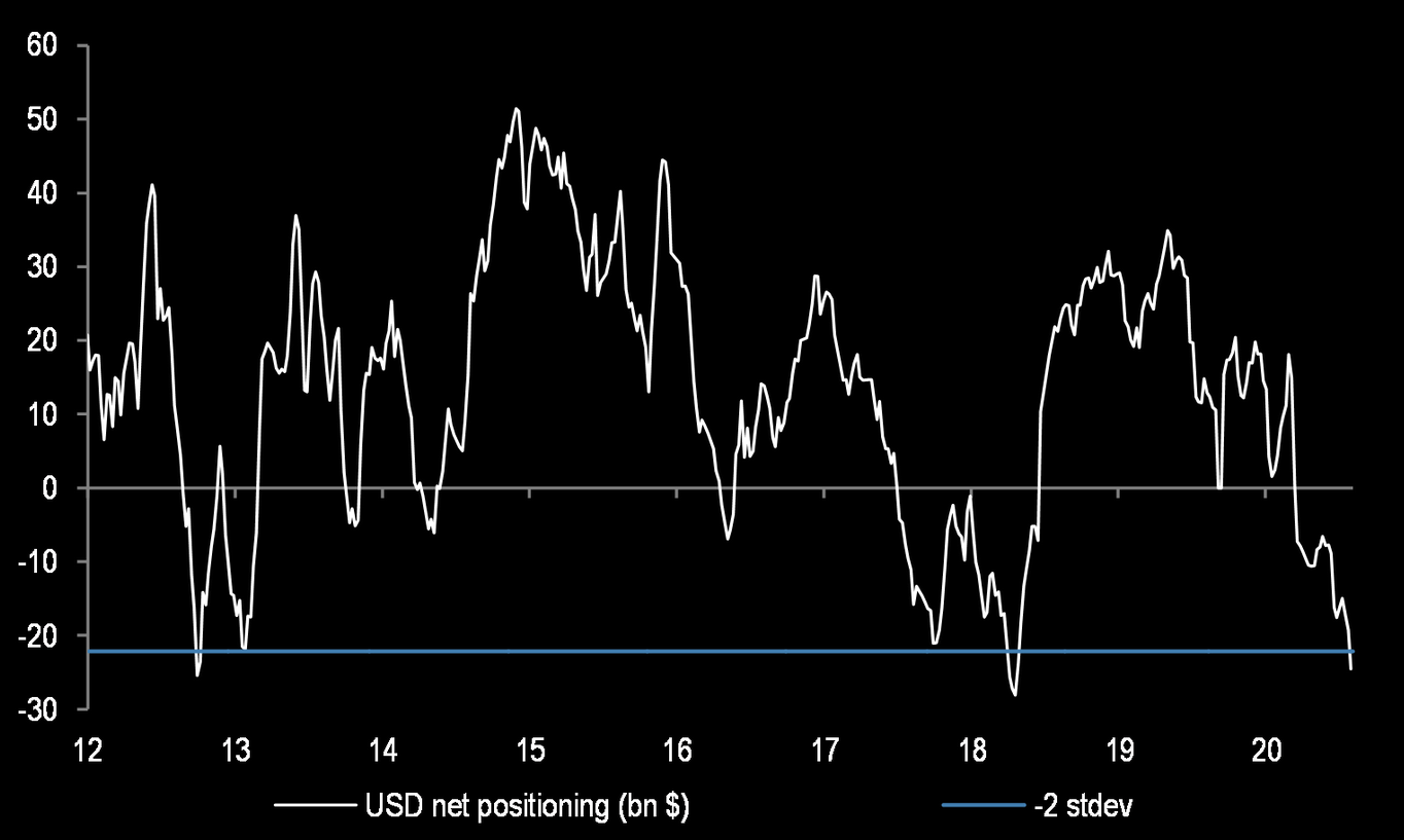 The third and final bearish tripwires is a reversal of USD weakness. USD positioning is screaming “crowded short”, and we just need some sort of catalyst to push it upwards.