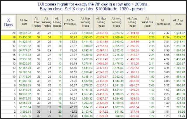 Does this mean that traders should turn bearish? Not necessarily. Price momentum remains strong. Rob Hanna at Quantifiable Edges documented what happens when the DJIA experiences a seven-day consecutive win streak, which it did until yesterday. While short-term returns can be volatile, returns over a one month time horizon have a bullish tilt.