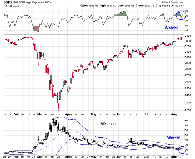 Here is a close-up look at gold and silver. It’s impossible to know the magnitude of the stock market weakness ahead of them. In the past, some reversals have resolved themselves in minor stock market hiccups, others in major pullbacks.
