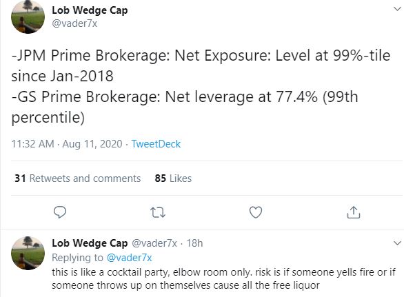 3. Speaking of which. If HFs are maximum long, then it’s unlikely the retail sector is anywhere near. It’s when HFs begin selling to retail in earnest that the fun begins.