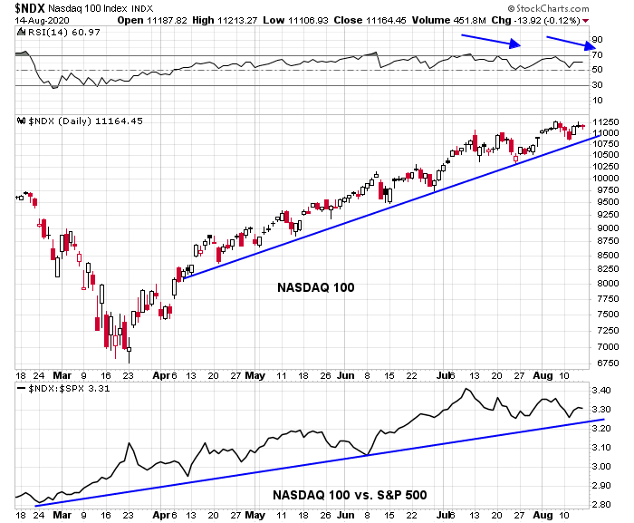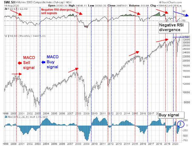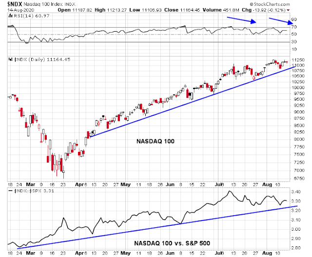 How long can Big Tech dominance last? Here are the short and intermediate term perspectives. In the short term, one shorthand for measuring the performance of Big Tech is the NASDAQ 100. The NASDAQ 100 remains in well-defined absolute and relative uptrends. While there are warnings of negative RSI divergences indicating a loss of momentum, there are no bearish trendline breaks to be concerned about.
