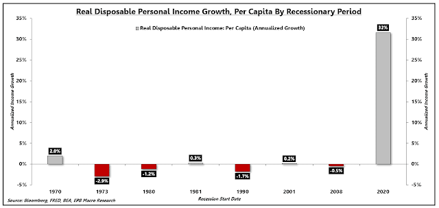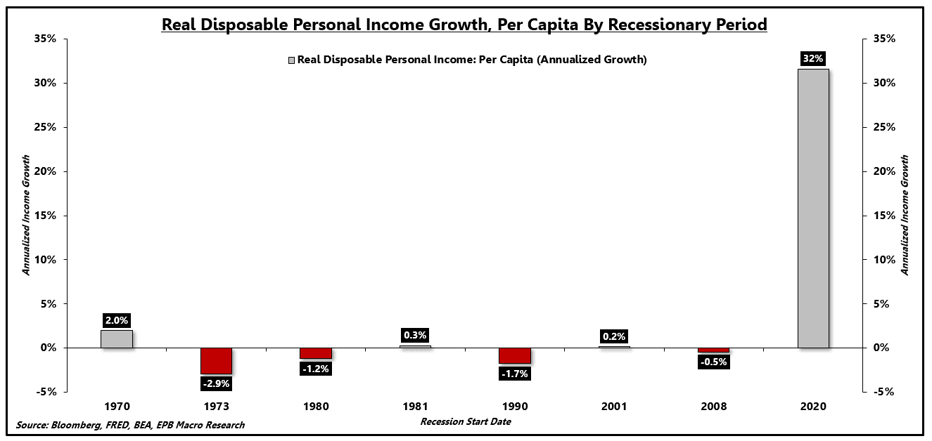 A more reasonable explanation is the unprecedented level of fiscal support to support growth. This recession is completely unlike past slowdowns. The government’s safety net has allowed consumers to maintain their spending to prevent a complete collapse in demand.