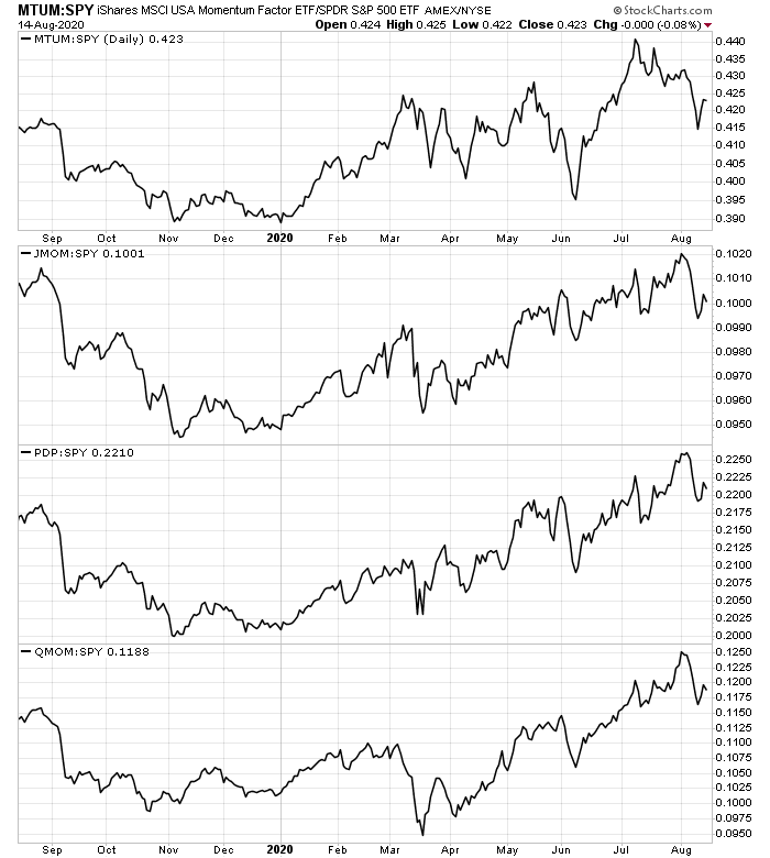 Another way of measuring the strength of Big Tech is through the price momentum factor. Price momentum factor portfolios become highly concentrated because of the strong performance of technology stocks. The relative performance of a variety of price momentum ETFs indicate that momentum remains in choppy but positive uptrends. One factor that may exacerbate the price momentum effect is a greater commitment to indexing. This technique creates a self-reinforcing cycle of positive money flows that mechanically buys more and more Big Tech heavyweights and creates a self-reinforcing price momentum effect.