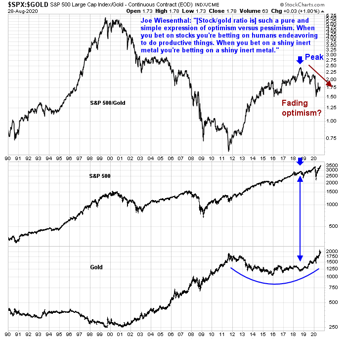 If the monetary authorities were to continue engaging in financial repression, it should be bullish for gold and other commodities. I have highlighted the stock to gold ratio, and a comment by Joe Wiesenthal of Bloomberg of how the ratio is a measure of confidence in the markets and the economy. This ratio is falling, and argues for a higher than normal position in gold and commodities in asset allocation.