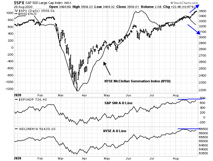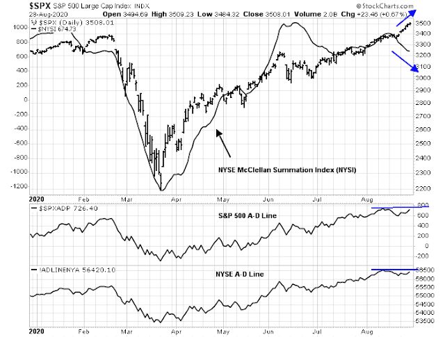 Equity market breadth is also not buying into the market advance, as there are numerous negative divergences.