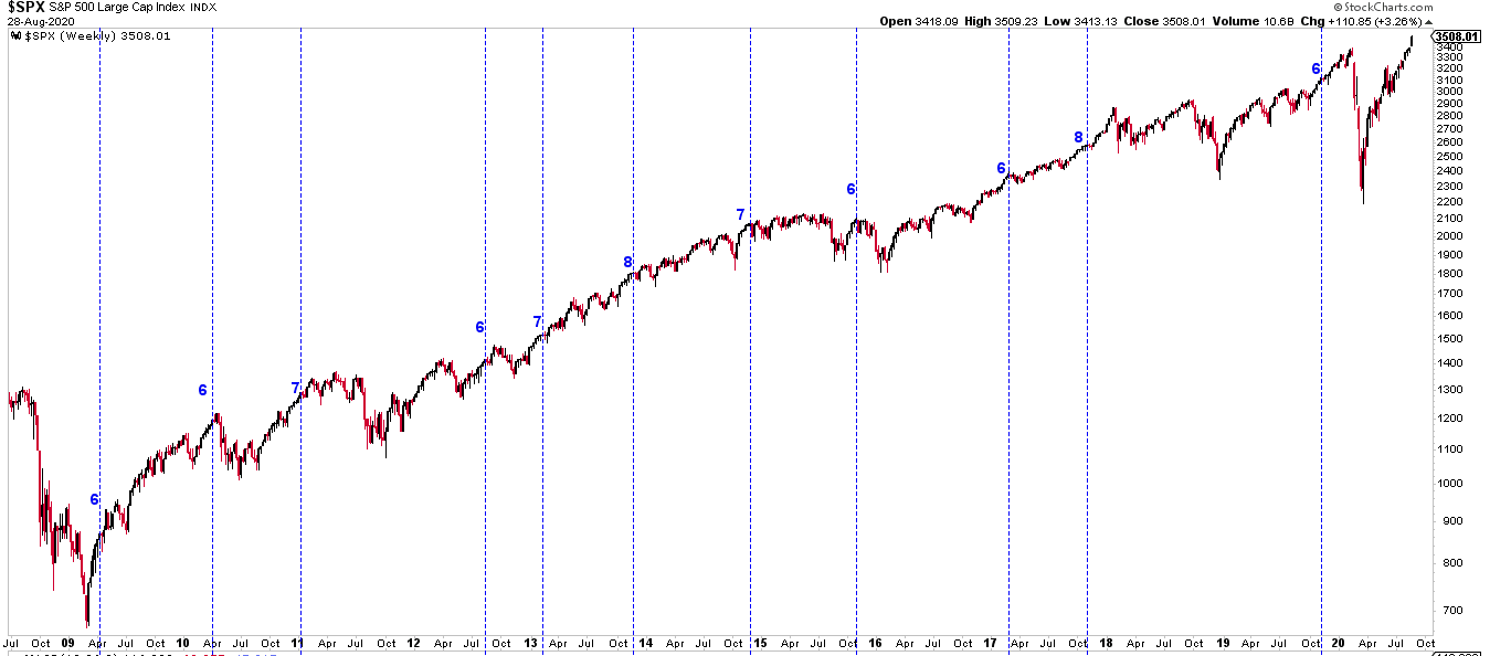 As well, Urban Carmel observed that the market has undergone a five week winning streak. Past winning streaks of six weeks or more have also tended to be bullish, with the exception of 2015.